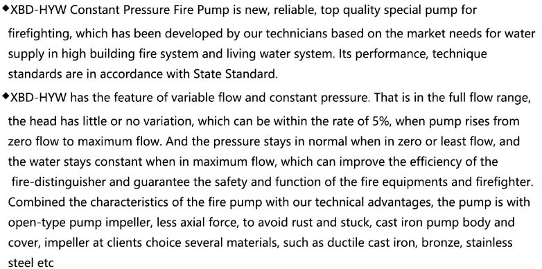 XBD-YHW series vertical tangent fire pump is TONGLIAN PUMP according to market needs and developed for high-rise building fire water and domestic water supply of the new product is a reliable , high-quality special fire pump .