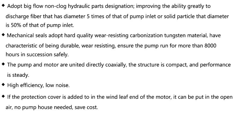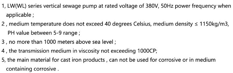 LW(WL) series vertical non-clog single suction sewage pump, adopts non-clock anti-twisting big flow impeller, have very good handling capacity.These serial pumps have two kinds of structure forms, one is motor and pump are coaxial directly, the other is adopting the shaft coupling.