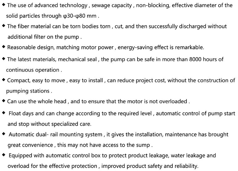 AS Series ABS submersible sewage pumps from Germany 's advanced technology , especially for transport contain hard solids, liquids, fibers , and particularly dirty, sticky and slippery liquid . All AS pumps are equipped with splitting the agency can Sewage long fiber , bags, belts, grass, cloth strips torn discharge.